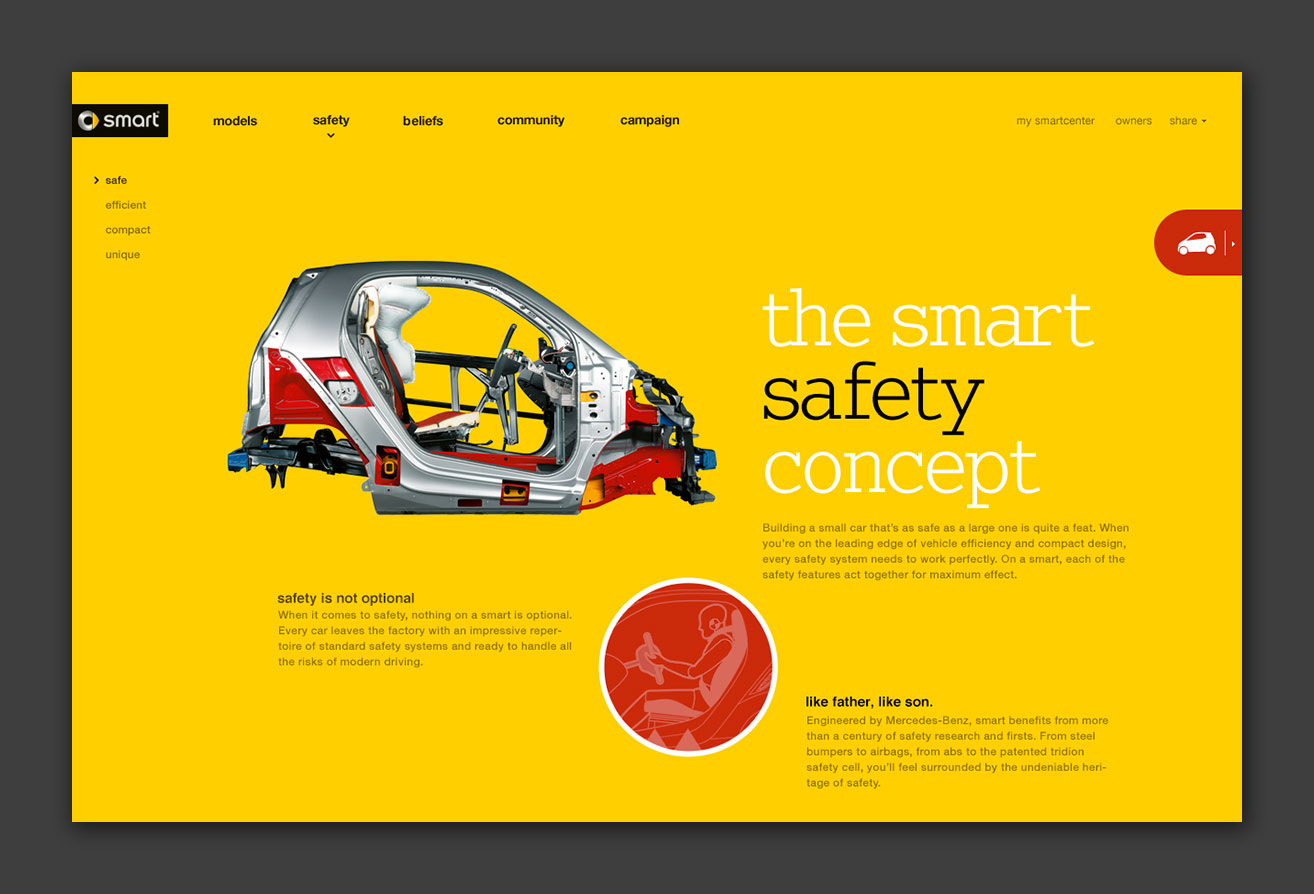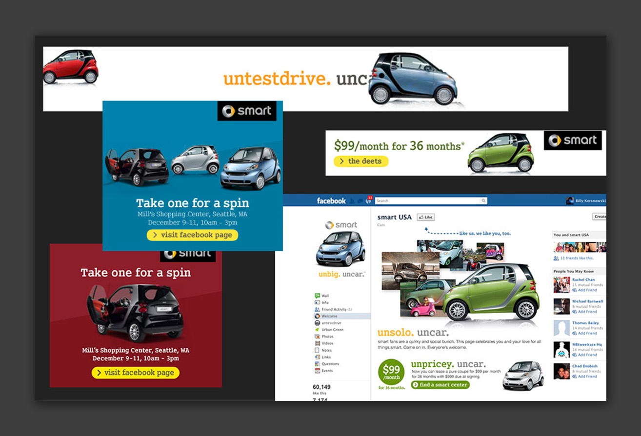 While at Razorfish I was responsible for redesigning the Smart car website we took a radical approach for the time building it to be responsive from the ground up as well as adding content that shifted and changed as the user scrolled and interacted. In addition created a number of digital ads and rich media experiences.